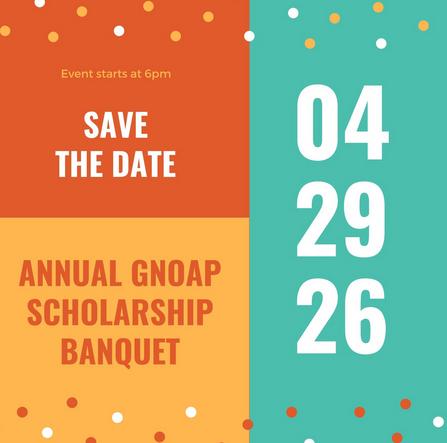 The Annual GNOAP Scholarship Banquet raises money for the next year's scholarship. This is done through the silent auction and restaurant board or other raffles.